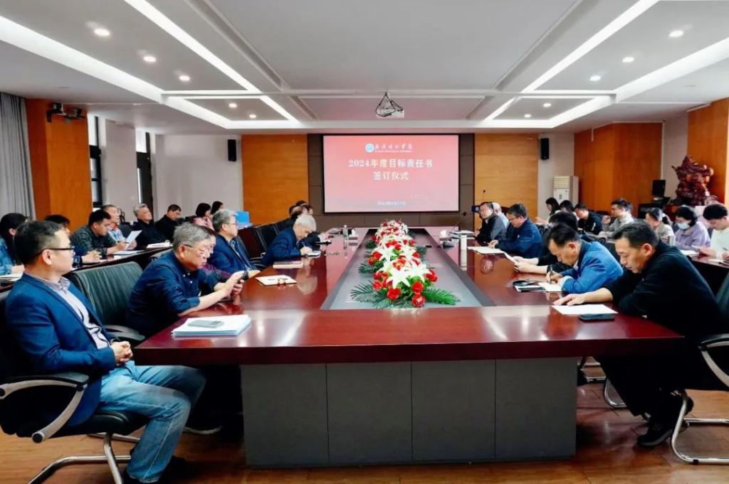 党委书记翟细春在主持会议时指出,此次目标责任书的签订,目的是进一步明确并推动学校各项重点工作目标任务落实,在全校范围形成人人肩上有压力,个个身上有指标的工作机制,全校上下要以本科教学工作合格评估为主线,以坚定必胜的信心,统一思想、凝聚共识,充分认识实施目标管理的重要意义;锚定目标、扛起责任,全力以赴推进年度目标任务落实落地;奋勇争先、善作善成,校领导、院领导、各部门负责人率先垂范,全体晴川人“急”起来、“紧”起来、“动”起来,主动想事、积极干事;同心同德、团结奋斗,积极联动协同,贡献智慧,相互支持、相互配合、相互促进,合力交出2024目标任务的完美“答卷”。