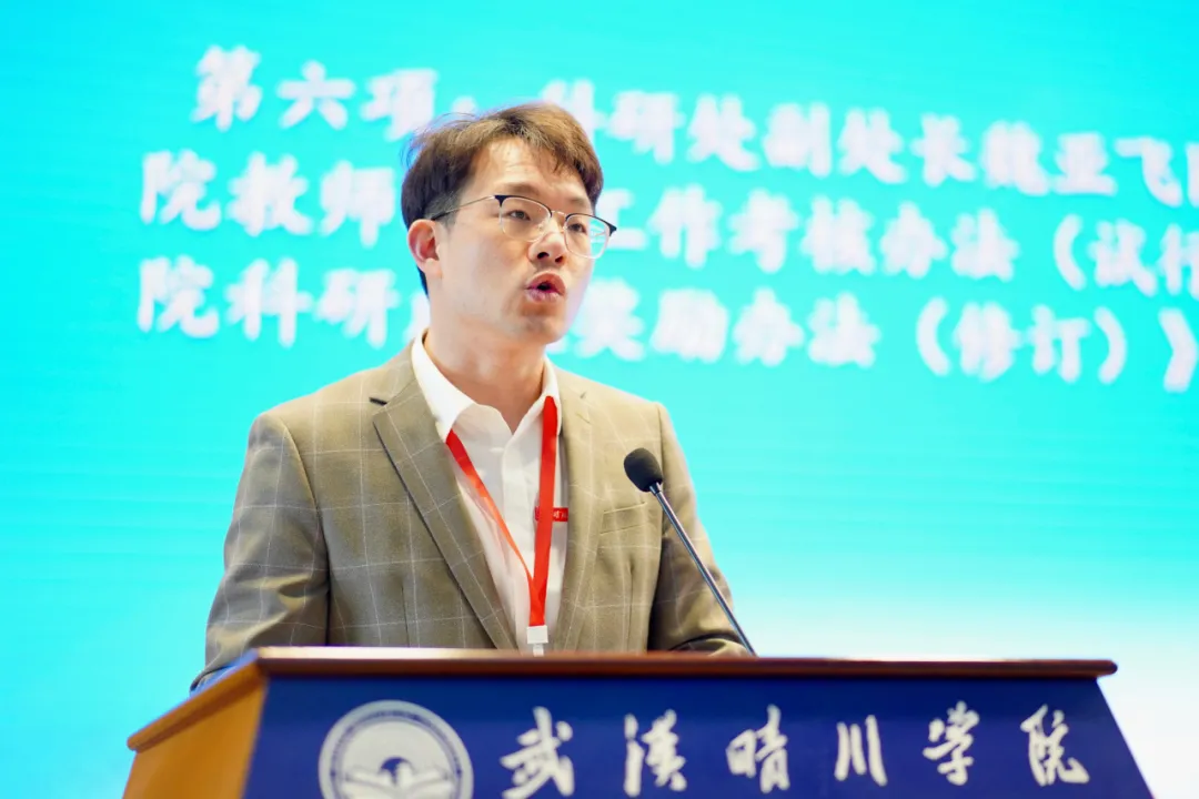 科研处副处长魏亚飞作《威廉希尔中文官网教师科研工作考核办法(试行)》《威廉希尔中文官网科研成果奖励办法(修订)》的说明。