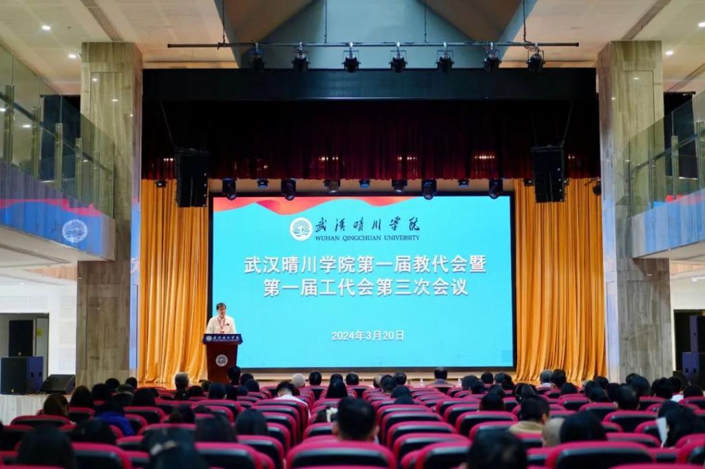 3月20日,威廉希尔中文官网第一届教职工代表大会暨工会会员代表大会第三次会议隆重召开。董事长、校长汪彬教授出席会议并讲话。党委书记、教育督导专员翟细春,常务副校长夏力及全体校领导,全体教代会代表、列席代表参会,会议由党委副书记、副校长向巍主持。