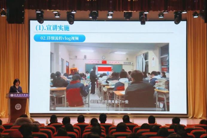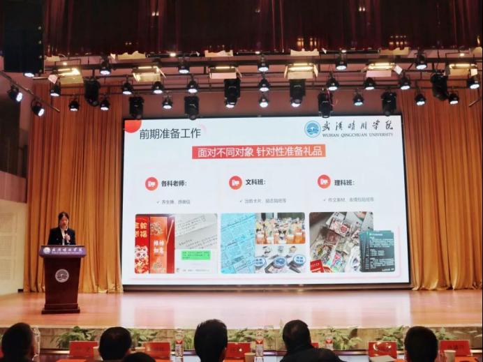 招生办公室主任汪威分享了 “优秀学子回访高中母校” 活动中的典型事例,向积极参与此项活动的同学们表达了诚挚的感谢,对同学们在活动中展现出来的团队协作精神与“晴川担当”给予了高度赞扬。他表示,本次活动旨在弘扬晴川学子的爱校荣校精神,充分发挥实践育人功效。活动成员们怀揣着对晴川的热爱回到母校,通过宣讲、答疑和互动,充分向学弟学妹们传递了“明体达用 抱璞开新”的晴川校训精神,全面展现了晴川的独特魅力与办学特色,有效提升了学校的知名度与美誉度。