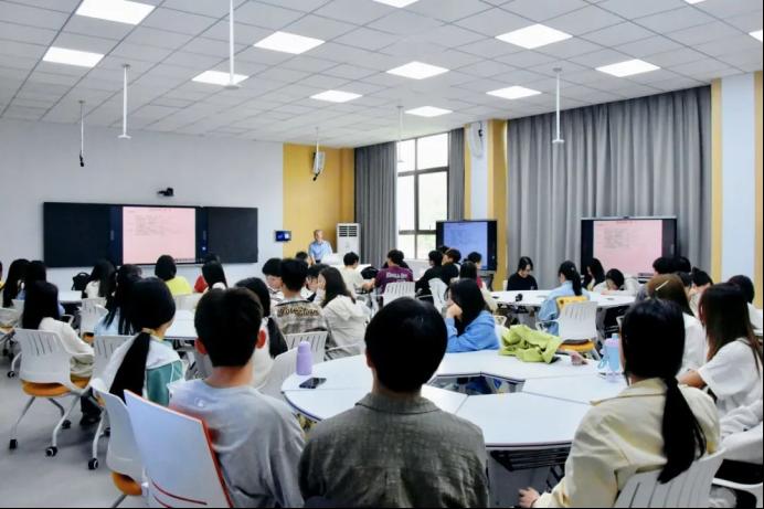 “四月的晴川,樱花未远,书香已浓。”汪彬校长在开场致辞中,以杜甫“迟日江山丽”的壮阔、白居易“乱花渐欲迷人眼”的烂漫、辛弃疾“春在溪头荠菜花”的恬淡为引,阐释书籍作为“时光琥珀”的价值——封存千年智慧,传递文明温度。他强调,阅读是“与春天的私语”,能让灵魂在诗句中“生根发芽”。汪彬校长结合晴川校园“樱花落处新叶生”的春日图景,寄语师生,捧起一本书,无论是唐诗的豪放、宋词的婉约,哲人的沉思、史家的笔锋,都是在“为精神种下一片春天”——让浮躁在墨香中沉淀,迷茫在叩问中明晰,生命在经典中获得超越时空的力量。他号召大家,不仅要在今日讲座中聆听春之诗,更在未来岁月里,把每一天都读成动人的篇章,让晴川人永远与诗书同行,精神的春天永不落幕。