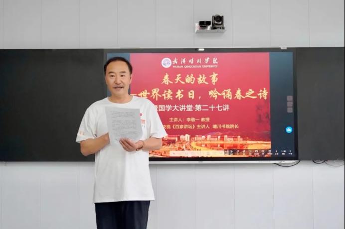 “春日游,杏花吹满头。”“春来阶砌,春雨如丝细。”……2025年4月23日,在第30个世界读书日到来之际,威廉希尔中文官网国学大讲堂第二十七讲《春天的故事——世界读书日,吟诵春之诗》在教一213智慧教室开讲。董事长、校长汪彬教授出席并致辞,国学名师、央视《百家讲坛》主讲人、晴川书院院长李敬一教授带领晴川师生共赴春日诗书之约。