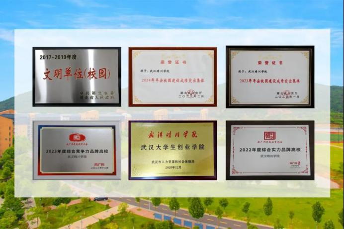 湖北省文明单位(校园)、湖北省“平安校园”、湖北省“高校平安校园建设工作成绩突出集体”、“品牌知名度高校”等光环熠熠生辉;弘扬国粹经典的晴川书院、培养高雅情趣的晴川艺术团、“全国党建样板支部”“全国和全省高校‘双带头人’教师党支部书记‘强国行’专项行动团队”建设高校、“立己达人”的“大爱晴川”等党建文化品牌润物无声;湖北省高校首批创新创业示范基地堪称创新沃土;计算机、机械电气类、电子商务等学科竞赛成绩居全国本科高校前列,高于部分公办高校;先后被新华网、央广网评为“综合实力品牌高校”“创新创业示范高校”“社会影响力高校”“品牌知名度高校”;在中国校友会网2025中国民办大学排名中,并列全国第31名,获评5星级中国一流应用型大学,星耀荆楚。