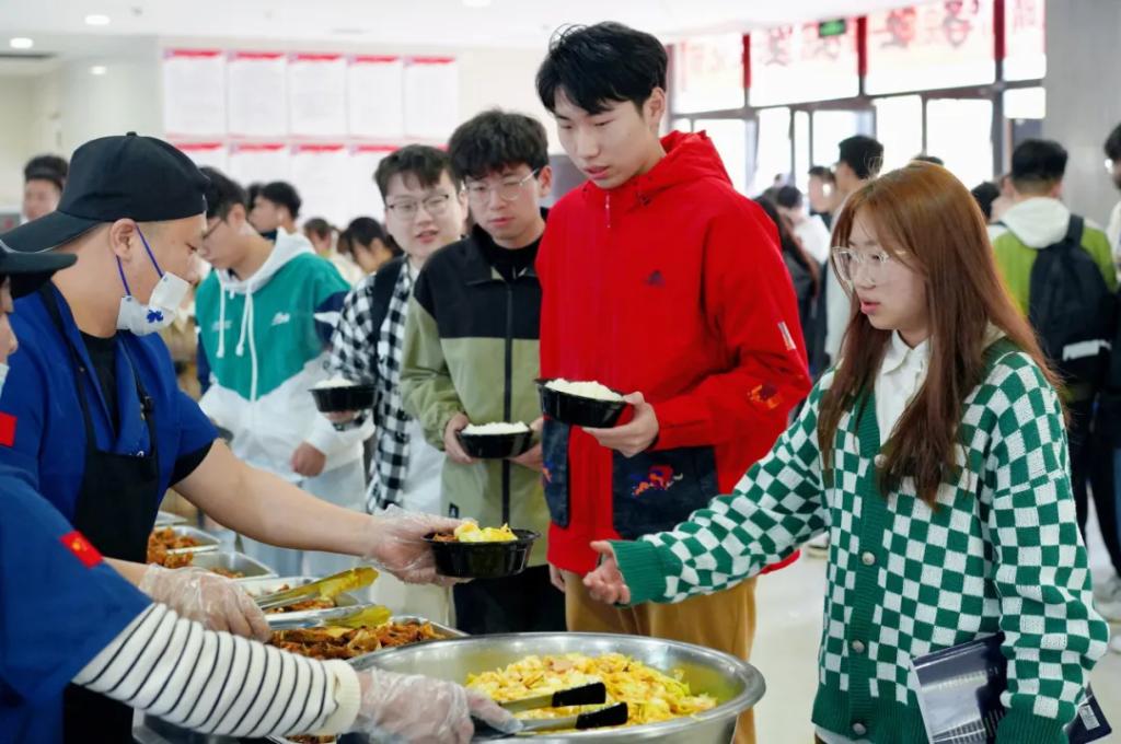 4月8日中午,在该校食堂的101、103档口,鱼头豆腐汤、红烧鱼块、椒盐鱼块、糍粑鱼等菜品,鱼香四溢,前来品鉴的学生排起了长队。来自会计学院的张同学表示:“红烧鱼块特别有家的味道,和老师同学们一起吃晴缘湖里捞上来的鱼,又开心,又暖心!其他学校的同学听说我们有全鱼宴,都表示很羡慕!”