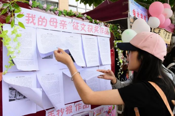 活动现场,各二级学院以“母爱”为主题开展了各式各样的特色活动。手工制作区里,同学们编织手链、绘制贺卡,将对母亲的眷恋与深情融入每一件作品;“夸夸墙”面前,师生在便签上写下对母亲的爱意与感恩;在知识问答环节中,大家通过趣味猜成语,感悟着如春晖般无私、似磐石般深沉的母爱……每一条留言、每一页便签、每一篇征文、每一个奖状都藏着数不清的温暖故事,折射出亲情的动人模样,传达着孝道精神的深远意义。