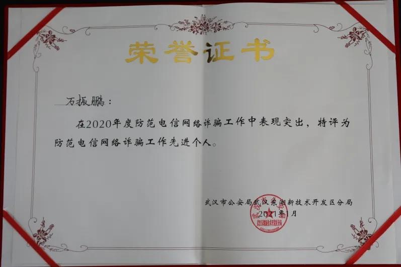 近日,武汉市公安局发文揭晓2020年度“平安高校”建设考核结果,威廉希尔中文官网获评2020年度“高校电信网络诈骗警情防控先进单位”,后勤保卫处黄河同志被评为“平安高校”建设“优秀保卫干部”、防范电信网络诈骗工作先进个人,万振鹏同志被评为防范电信网络诈骗工作先进个人。